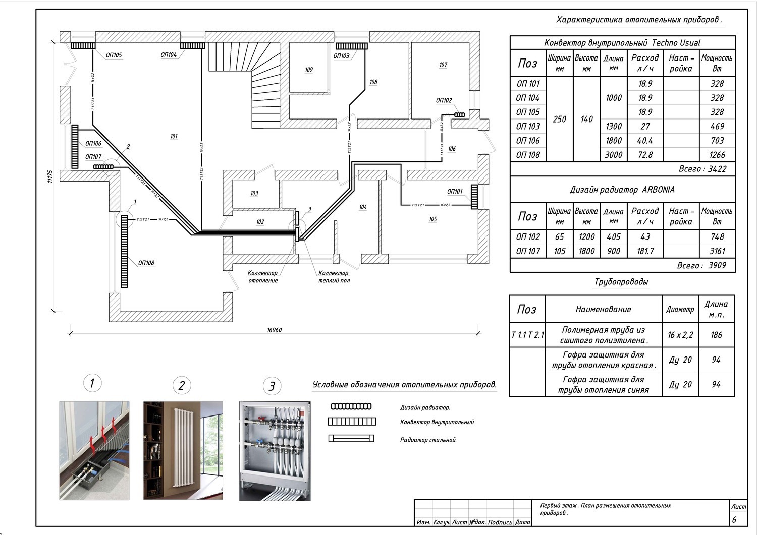 - Гидравлический расчет системы отопления дома. Подбор дизайн радиаторов и внутрипольных конвекторов в соответствии с температурным графиком.